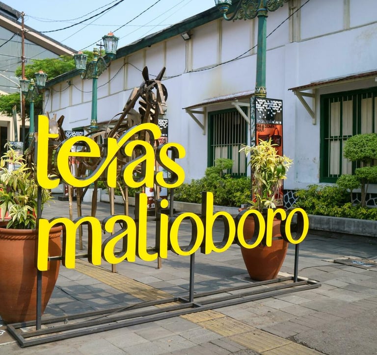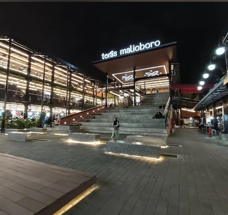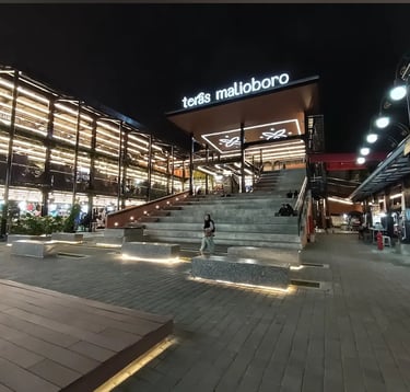 Teras Malioboro adalah kawasan pusat belanja dan wisata baru di Yogyakarta yang dirancang untuk memberikan kenyamanan bagi pengunjung. Di sini, para pedagang kaki lima yang sebelumnya berjualan di sepanjang Jalan Malioboro kini ditata lebih rapi dan modern, namun tetap mempertahankan suasana khas Jogja.